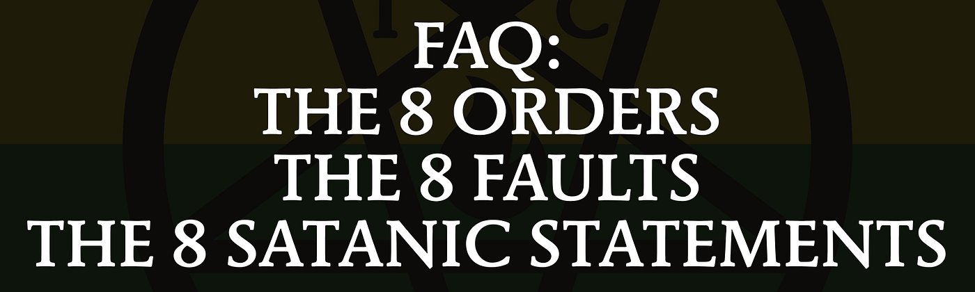 You are more than welcome to distribute or establish the 8 Orders, Faults and Satanic Statements as the foundation for your organization or community. However, you cannot use them commercially, like selling them on products.