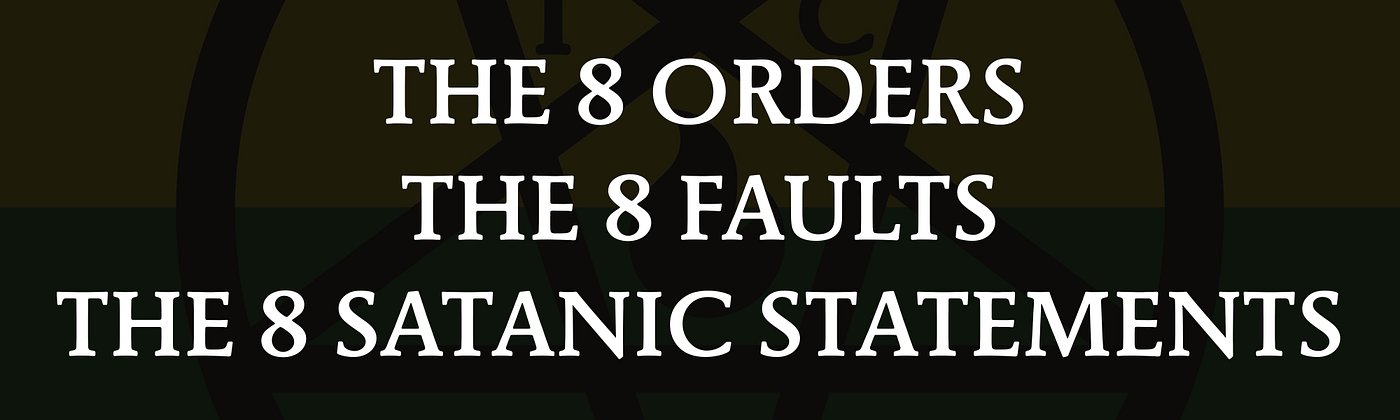 The 8 Orders of Satanism are the ethical principles of The Satanic Circle.